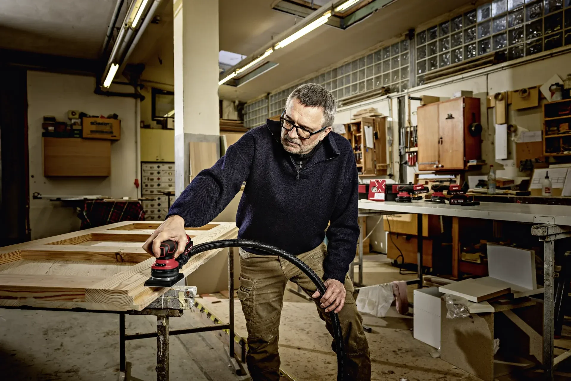 - Leichter, kompakter Einhand-Schwingschleifer, besonders ergonomisch und vibrationsarm durch spezielle Auswuchtung für ermüdungsfreies und gelenkschonendes Arbeiten
